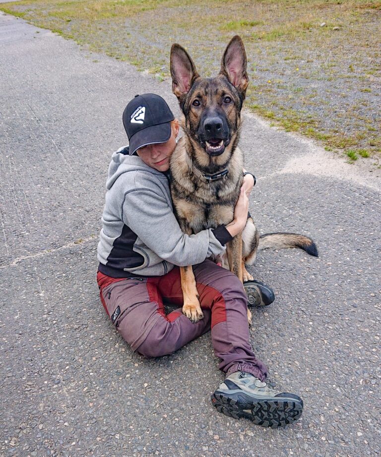 Toimin myös koiran kanssa ja työparinani on saksanpaimenkoira Leka; rauhallinen koira, joka luo olemuksellaan sekä isolla koollaan ympäristöön turvallisuuden tunnetta ja auttaa lievittämään ahdistusta.